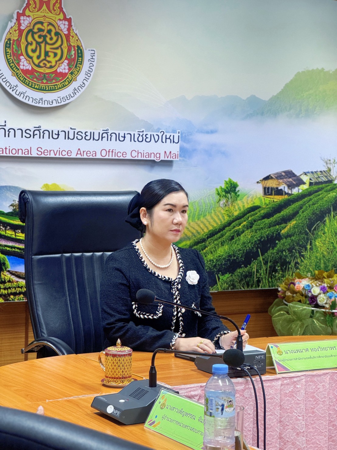 วันพฤหัสบดี ที่ 6 พฤศจิกายน 2568 เวลา 08.00 น. นางนพมาศ ทองวิทยาพร รองผู้อำนวยการสำนักงานเขตพื้นที่การศึกษามัธยมศึกษาเชียงใหม่ รักษาราชการแทนผู้อำนวยการสำนักงานเขตพื้นที่การศึกษามัธยมศึกษาเชียงใหม่ ผู้อำนวยการกลุ่ม และผู้อำนวยการหน่วยตรวจสอบภายใน ติดตามรับชมรายการ พฤหัสเช้า ข่าวสพฐ. ครั้งที่ 43/2568 จากสำนักงานคณะกรรมการการศึกษาขั้นพื้นฐาน ผ่านระบบ Video Conference เพื่อให้ข้าราชการครูและบุคลากรทางการศึกษา รับทราบแนวทางการดำเนินงานการจัดการศึกษาในการนำนโยบายสู่การปฏิบัติ